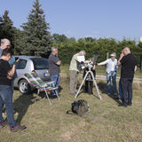 Als Gastgeber hieß uns die SG Friedersdorf willkommen, richtete den Saal her und versorgte uns mit Gegrilltem und Getränken. Wir begutachtetetn die Astrowiese und es gab 2 Beobachtungsmöglichkeiten mit H-Alpha Filter. Hartmut Pietsch wurde zum diesjährigen Sonnenflecken-Zählmeister gekürt, da er 6 Gruppen zählte während alle anderen vorher nur auf 4 kamen. Nach einem Vortrag über die diesjährige Namibiareise von André, Andreas, Ines und Johannes wurde aufgebaut und fotografiert bei bester Sicht.